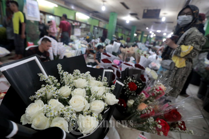 Pembeli memilih bunga di Pasar Rawa Belong, Jakarta, Minggu (13/2/2022). Menurut keterangan pedagang, jelang Hari Valentine omzet penjualan bunga di Pasar Rawa Belong mengalami penurunan dari biasanya, yang di karenakan meningkatnya angka COVID-19 varian Omicron. TRIBUNNEWS/IRWAN RISMAWAN