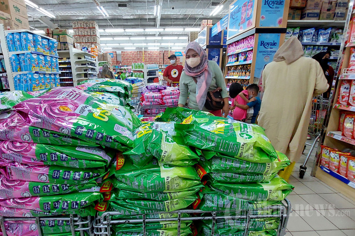 Pengunjung mengamati barang di salah satu pasar swalayan di Tangerang Selatan, Banten, Minggu (19/6/2022). Rilis Bank Indonesia menyatakan, penjualan ritel yang dicerminkan oleh Indeks Penjualan Riil berada di 239,2 pada April 2022. Naik 8,5% dibandingkan periode yang sama tahun lalu (year-on-year/yoy). Melambat dibandingkan pertumbuhan bulan sebelumnya yang 9,3% yoy. TRIBUNNEWS/IRWAN RISMAWAN