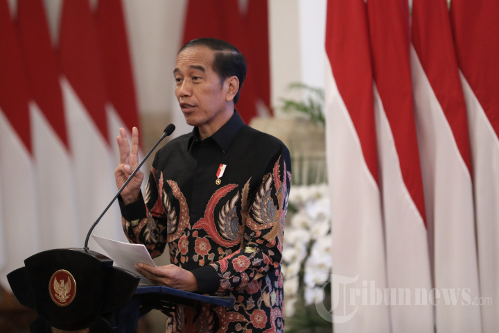 Presiden Joko Widodo menyampaikan pengarahan dalam penyerahan digital Daftar Isian Pelaksanaan Anggaran (DIPA) dan Buku Daftar Alokasi Transfer ke Daerah Tahun Anggaran 2024 di Istana Negara, Jakarta, Rabu (29/11/2023). Presiden Jokowi menyerahkan secara digital DIPA dan Buku Daftar Alokasi Transfer ke Daerah tahun 2024 kepada para menteri, kepala lembaga, serta kepala daerah. TRIBUNNEWS/IRWAN RISMAWAN