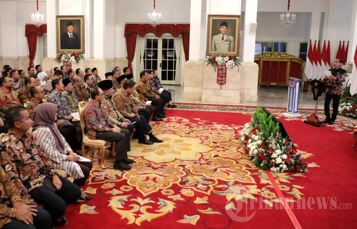 Presiden Joko Widodo menyampaikan pengarahan dalam penyerahan digital Daftar Isian Pelaksanaan Anggaran (DIPA) dan Buku Daftar Alokasi Transfer ke Daerah Tahun Anggaran 2024 di Istana Negara, Jakarta, Rabu (29/11/2023). Presiden Jokowi menyerahkan secara digital DIPA dan Buku Daftar Alokasi Transfer ke Daerah tahun 2024 kepada para menteri, kepala lembaga, serta kepala daerah. TRIBUNNEWS/IRWAN RISMAWAN