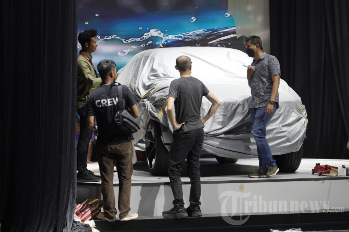 Suasana persiapan jelang pameran Indonesia International Motor Show (IIMS) 2023 di JIExpo, Jakarta, Rabu (15/2/2023). Pameran yang akan digelar dari 16 Februari hingga 26 Februari 2023 itu sejumlah merek terkenal kendaraan di Indonesia baik roda empat dan roda dua serta kendaraan listrik. TRIBUNNEWS/HERUDIN