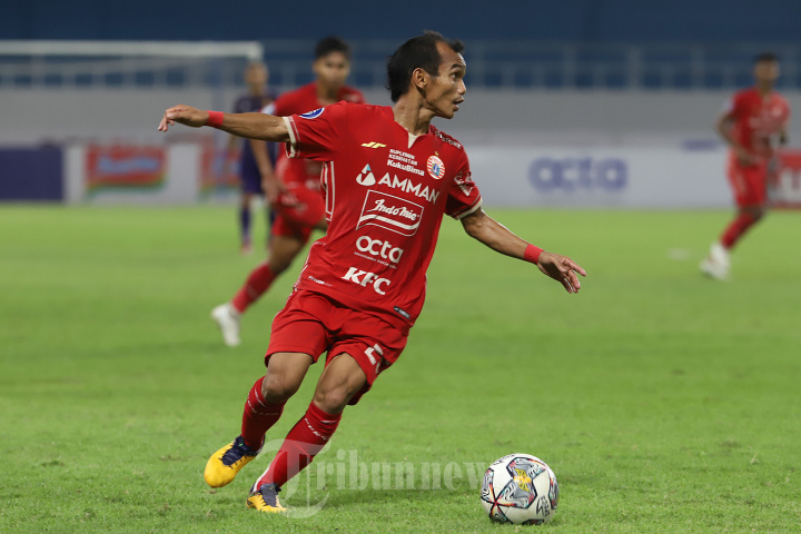 Pemain Persija Jakarta Riko Simanjuntak saat mengejar bola pada pertandingan Liga 1 di Stadion Jatidiri, Semarang, Jawa Tengah, Sabtu (10/12/2022). Hingga pluit akhir babak kedua ditiup Persik Kediri menahan imbang 1-1 Persihja Jakarta. Tribunnews/Jeprima