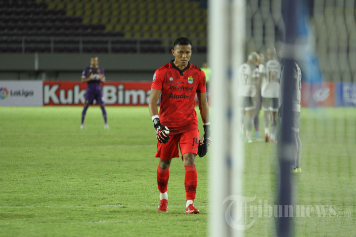 Penjaga gawang Persib Bandung, Teja Paku Alam pada laga Persik Kediri vs Persib Bandung dalam lanjutan BRI Liga 1 2022/2023 di Stadion Manahan, Solo, Rabu (7/12/2022) malam. Persib Bandung unggul 0-2 di babak pertama. TRIBUN SOLO/Muhammad Nursina