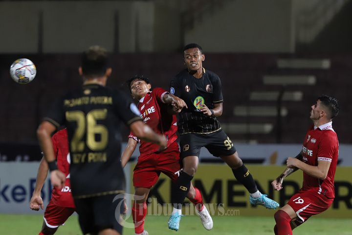 Pemain PS Barito Putera R Beri berebut bola diudara dengan pemain Persis Solo Zanadin pada pertandingan Liga 1 di Stadion Sultan Agung Bantul, Yogyakarta, Selasa (13/12/2022). Hingga pluit panjang babak kedua berbunyi skor kacamata untuk Persis Solo vs PS Barito Putera Tribunnews/Jeprima