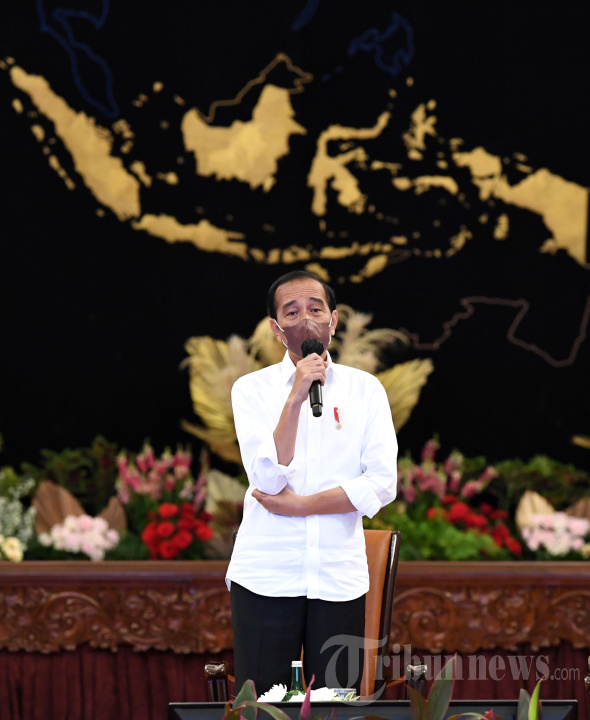 Presiden Joko Widodo menerima kunjungan para seniman dan budayawan di Istana Negara, Jakarta Pusat, Kamis (10/2/2022). Pada kesempatan tersebut, para seniman menyampaikan harapannya kepada Presiden Jokowi mengenai pelaksanaan kegiatan pertunjukan seni budaya di Tanah Air selama masa pandemi. Tribunnews/HO/Biro Pers Setpres/Lukas