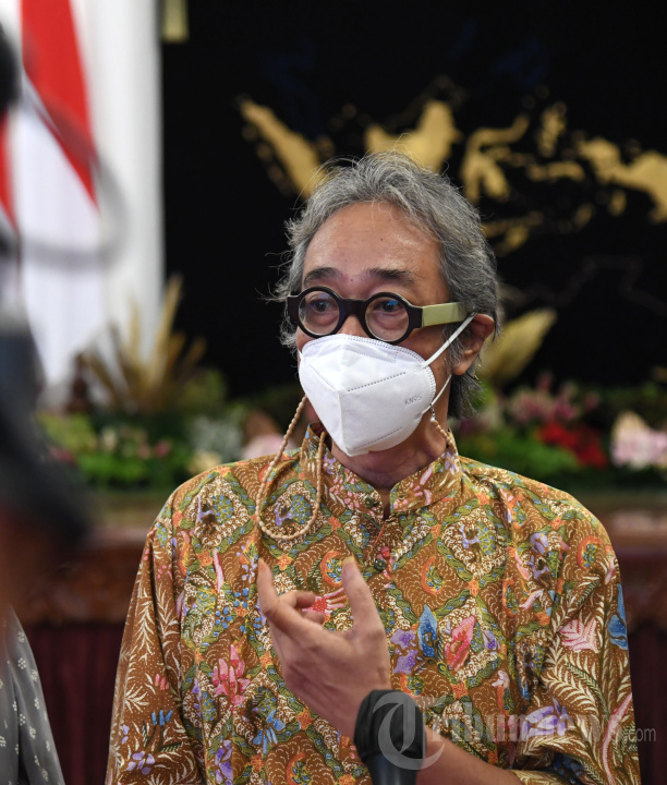 Seniman Butet Kartaredjasa memberikan keterangan usai menghadiri pertemuan para seniman dan budayawan dengan Presiden Joko Widodo di Istana Negara, Jakarta Pusat, Kamis (10/2/2022). Pada kesempatan tersebut, para seniman menyampaikan harapannya kepada Presiden Jokowi mengenai pelaksanaan kegiatan pertunjukan seni budaya di Tanah Air selama masa pandemi. Tribunnews/HO/Biro Pers Setpres/Lukas