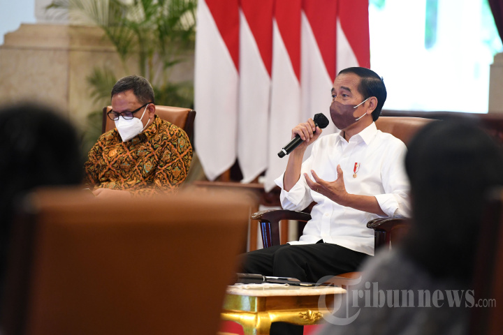 Presiden Joko Widodo menerima kunjungan para seniman dan budayawan di Istana Negara, Jakarta Pusat, Kamis (10/2/2022). Pada kesempatan tersebut, para seniman menyampaikan harapannya kepada Presiden Jokowi mengenai pelaksanaan kegiatan pertunjukan seni budaya di Tanah Air selama masa pandemi. Tribunnews/HO/Biro Pers Setpres/Lukas