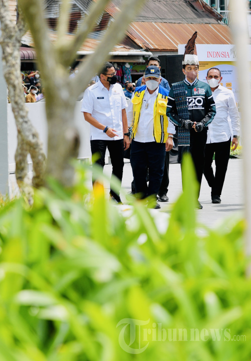Presiden Joko Widodo meninjau sekaligus meresmikan penataan Kawasan Pantai Bebas Parapat di Kabupaten Simalungun, Sumatera Utara, Rabu (2/2/2022). Kehadiran Presiden Jokowi adalah untuk melihat revitalisasi dan perbaikan-perbaikan fasilitas guna mendukung salah satu destinasi wisata kawasan Danau Toba tersebut. Turut mendampingi Jokowi dalam peninjauan antara lain Menko Bidang Kemaritiman dan Investasi, Luhut Binsar Pandjaitan, Menteri Pekerjaan Umum dan Perumahan Rakyat (PUPR), Basuki Hadimuljono, Menteri Pariwisata dan Ekonomi Kreatif, Sandiaga Uno, Gubernur Sumatera Utara, Edy Rahmayadi, dan Bupati Simalungun, Radiapoh Hasiholan Sinaga. Tribunnews/HO/Biro Pers Setpres/Laily Rachev