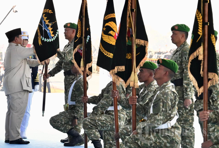 Presiden Prabowo Hadiri Upacara Gelar Pasukan dan Kehormatan Militer di Batujajar