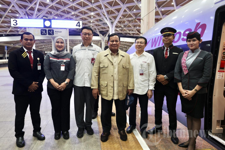 Presiden RI Prabowo Subianto menggunakan kereta cepat "Whoosh" dari Stasiun Halim, Jakarta, bertolak menuju Bandung, Jawa Barat, Rabu. (6/8/2025). Keberangkatan Presiden ke Bandung untuk membuka Konvensi Sains, Teknologi, dan Industri Indonesia (KSTI) 2025 di Gedung Sasana Budaya Ganesa (Sabuga) ITB, Bandung pada 7?9 Agustus 2025. (Tribunnews/Sekretaris Presiden RI/HO)