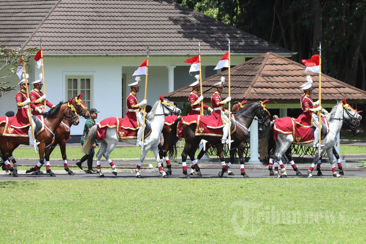 KUNJUNGI ISTANA BOGOR -Sejumlah pasukan berkuda menyambut kedatangan Presiden Turki Recep Tayyip Erdogan di Istana Kepresidenan Bogor, Jawa Barat, Rabu (12/2/2025). Sebagai informasi, Erdogan telah tiba di Indonesia pada Selasa (11/2) kemarin malam melalui Pangkalan Udara Halim Perdanakusuma. Kunjungan Erdogan ke Indonesia ini dalam rangka kunjungan kenegaraan guna mempererat hubungan baik yang telah terjalin antara Indonesia dan Turkiye. Tribunnews/Jeprima