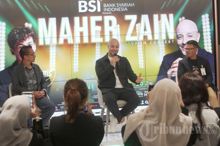 KONSER MAHER ZAIN - SEVP Digital Banking PT Bank Syariah Indonesia Tbk (BSI) M.Misbahul Munir (kanan) bersama Penyanyi Internasional Maher Zain (tengah) menggelar konferensi pers BSI Presents Maher Zain Live In Concert 2025 di Kantor Pusat BSI, Jakarta, Jumat (7/11/2025). BSI memperkuat islamic ecosystem salah satunya melalui lifestyle musik islami dengan mempersembahkan BSI Presents Maher Zain Live In Concert 2025 yang akan diselenggarakan di tiga kota diantaranya Jakarta pada 9 November, Makassar 14 November dan Surabaya 16 November. Tribunnews/Jeprima