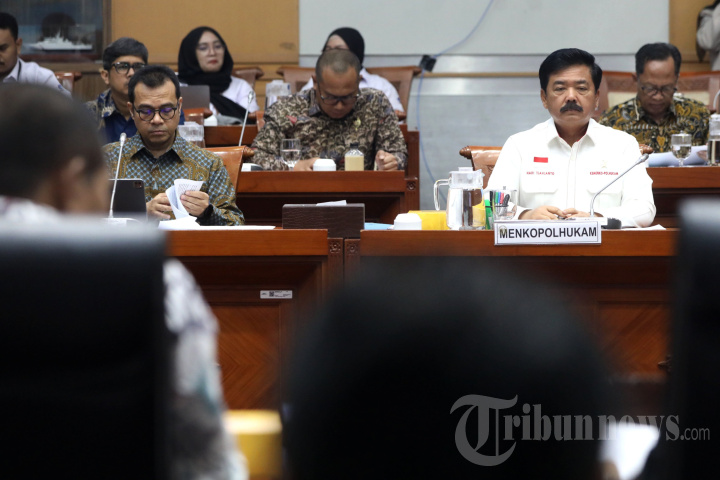 Menko Polhukam Hadi Tjahjanto bersama Wakil Menteri Komunikasi dan Informatika Nezar Patria mengikuti rapat kerja dengan Komisi I DPR di Kompleks Parlemen, Senayan, Jakarta, Senin (23/9/2024). Rapat tersebut membahas pencegahan serangan siber di masa depan terhadap Pusat Data Nasional Sementara (PDNS). TRIBUNNEWS/IRWAN RISMAWAN