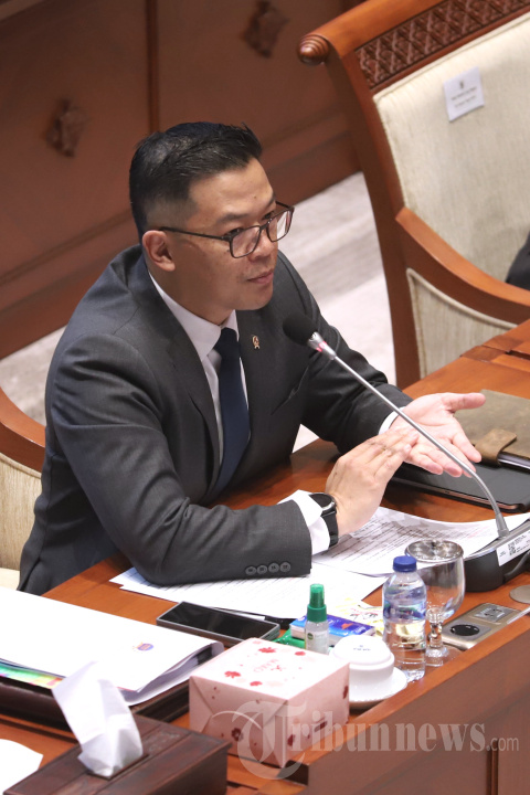 RAKER DPR - Menteri Luar Negeri Sugiono saat mengikuti rapat kerja bersama Komisi I DPR di Kompleks Parlemen, Senayan, Jakarta, Senin (30/6/2025). Rapat tersebut membahas tentang kondisi geopolitik dan perlindungan WNI di luar negeri. TRIBUNNEWS/IRWAN RISMAWAN