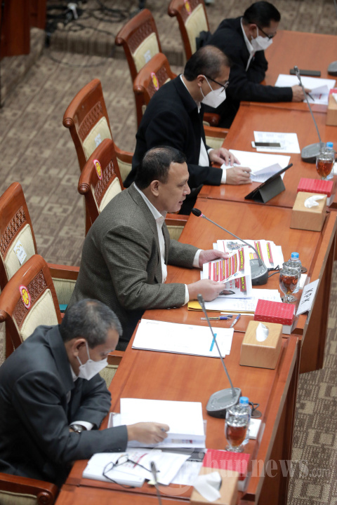 Ketua KPK Firli Bahuri saat mengikuti rapat kerja bersana Komisi III DPR di Kompleks Parlemen, Jakarta, Rabu (30/3/2022). Rapat tersebut membahas capaian target PNBP di tahun 2021 dan target Ppencapaian PNBBP tahun 2022 serta pelaksanaan tupoksi salam rangka optimalisasi penyelamatan keuangan negara serta meningkatkan target PNBP. TRIBUNNEWS/IRWAN RISMAWAN