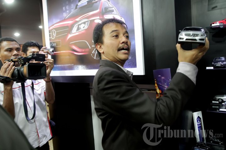 Menteri Pemuda dan Olahraga (Menpora), Roy Suryo melihat-lihat sejumlah miniatur mobil yang dipamerkan di both Mercedes-Benz saat mengunjungi pameran Indonesia International Motor Show (IIMS) 2013 di JIExpo, Kemayoran, Jakarta Pusat, Kamis (26/9/2013). Kedatangan Roy Suryo sontak menjadi pusat perhatian para pengunjung IIMS 2013, khususnya mereka yang sedang berada di Hall A tempat stan Chevrolet, Daihatsu, dan Mercedes-Benz. (Tribun Jakarta/Jeprima)