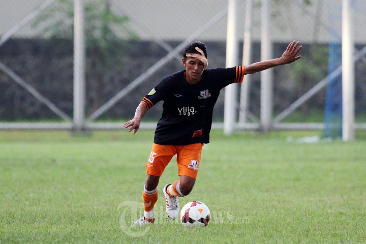 Pemain Villa 2000, Saronih berusaha mengontrol bola dalam pertandingan Kompetisi Divisi Utama di Stadion Ciracas, Jakarta Timur, Selasa (15/4/2014). Dalam pertandingan tersebut Persikabo menang 1-2 atas Villa 2000 dalam Kompetisi Divisi Utama Liga Indonesia (SUPERBALL/Feri Setiawan)