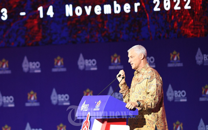 TRIBUNNEWS.COM, BALI - Standard Chartered Bank (SCB) Group CEO Bill Winters memberikan keynote speech di acara B20 Summit Indonesia 2022 (13/11/22) di Bali. Dalam sambutannya, Bill menekankan pentingnya kemitraan yang kuat antara sektor publik dan swasta untuk memobilisasi keuangan dan menyalurkan dana guna membiayai proyek transisi menuju net-zero di negara-negara berkembang, salah satunya melalui blended finance. The B20 Finance and Infrastructure Task Force, dimana Bill berperan sebagai Co-chair, telah menekankan pentingnya blended finance sebagai prioritas untuk mewujudkan transisi energi dan menutup kesenjangan infrastruktur. SCB secara global berkomitmen untuk menyalurkan USD300 miliar untuk pembiayaan transisi ke energi bersih selama periode 2021 - 2030. //IST/HO
