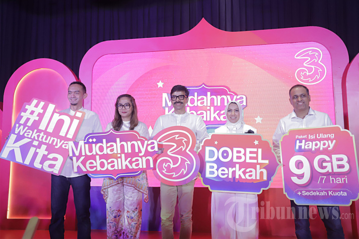 SVP-Head of Product Strategy & Pricing Tri Beka Faryan Riangka, SVP Head of Brand Marketing & Communications Tri Galuh Neftita, Director & Chief Commercial Officer Indosat Ooredoo Hutchison Ritesh Kumar Singh, Direktur Eksekutif Yayasan Dakwah Lentera Hati Indonesia (Pusat Studi Al Qur'an) Nasywa Shihab, SVP-Head of Digitalization Indosat Ooredoo Hutchison Sudheer Chawla, saat peluncuran kampanye ramadan Tri #MudahnyaKebaikan yang diadakan di Jakarta, Jumat (8/3/2024). Indosat Ooredoo Hutchison (Indosat atau IOH) melalui brand Tri, meluncurkan kampanye #MudahnyaKebaikan untuk mengajak masyarakat berbuat kebaikan kepada sesama dengan cara yang mudah, salah satunya melalui Sedekah Kuota. Kampanye yang berlangsung selama bulan Ramadan ini bertujuan untuk menebar kebaikan tidak hanya dalam bentuk materi, namun juga bisa dilakukan melalui senyuman, memberikan doa baik, atau membantu satu sama lain apapun bentuknya. Tribunnews/Jeprima