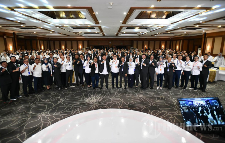PERNYATAAN SIKAP - Presiden FSPPB Arie Gumilar, berfoto bersama usai membacakan pernyataan sikap disela acara Penutupan Perundingan PKB IX Periode 2025-2027 dengan tema ?PKB Sebagai Pilar Penguatan SDM Untuk Kedaulatan Energi Nasional? di Hotel Patra, Tuban, Kuta, Badung, Bali, akhir pekan kemari. Federasi Serikat Pekerja Pertamina Bersatu (FSPPB) dengan tegas menyerukan agar Pertamina kembali menjadi perusahaan negara yang terintegrasi dari hulu hingga hilir dan berada langsung di bawah kendali Presiden RI. (FSPPB/Tribunnews/HO)