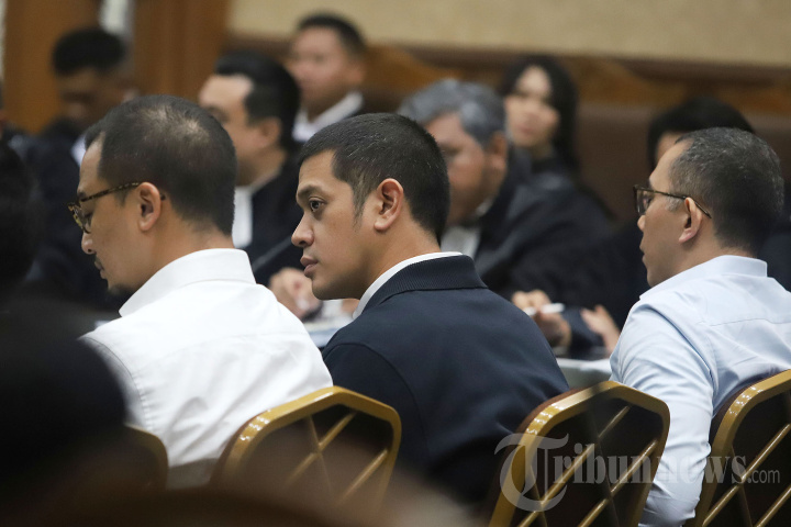 SIDANG DAKWAAN - Terdakwa kasus korupsi tata kelola minyak mentah Beneficial owner PT Navigator Khatulistiwa Muhamad Kerry Adrianto Riza, Komisaris PT Navigator Khatulistiwa sekaligus Komisaris PT Jenggala Maritim Dimas Werhaspati dan VP Feedstock Management PT Kilang Pertamina Internasional Agus Purwono mengikuti sidang dakwaan di Pengadilan Tipikor, Jakarta Pusat, Senin (13/10/2025). Lima terdakwa didakwa merugikan negara sebesar Rp285,98 triliun terkait dugaan korupsi tata kelola minyak mentah dan produk kilang pada PT Pertamina Subholding dan Kontraktor Kontrak Kerja Sama (KKKS) tahun 2018-2023. Tribunnews/Jeprima