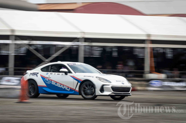 Mobil Subaru BRZ tampil di ajang Indonesia Drift Series 2024 yang digelar di Indonesia International Motor Show (IIMS) 2024, JIExpo Kemayoran, Jakarta, Sabtu (17/2/2024). Subaru BRZ menjadi mobil resmi di ajang Women Drift Challenge, yang merupakan bentuk dukungan Subaru Indonesia untuk menyampaikan pesan inklusi dan pemberdayaan perempuan.TRIBUNNEWS/HO