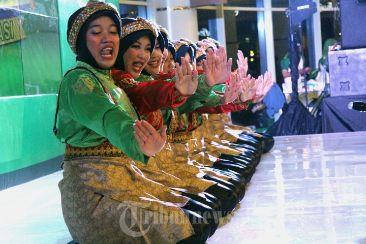 Tari 'Saman' asal Aceh, ramaian acara HUT PT Pegadaian ke-117, dalam pembukaan 'Pegadaian Literation Fair 2018' yang dihadiri Arifmon, seIaku Pemimpin Wilayah Kanwil VIII Jakarta PT Pegadaian (Perseno) didampingi Diputi Bisnis Pegadaian Bekasi Ibu Anna dan Inspektur Pagadaian Bekasi Sujud, Minggu (1/4/2018) berlangsung di Summarecon Mall Bekasi. TRIBUNNEWS.COM/FX ISMANTO