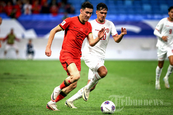 Pemain Indonesia Shayne Pattynama (Kanan) berebut bola dengan pemain Tiongkok Behram Abduweli selama pertandingan kualifikasi Piala Dunia FIFA 2026 Asia antara Tiongkok dan Indonesia di Qingdao, provinsi Shandong, Tiongkok timur pada tanggal 15 Oktober 2024. (Photo by AFP) / China OUT / CHINA OUT