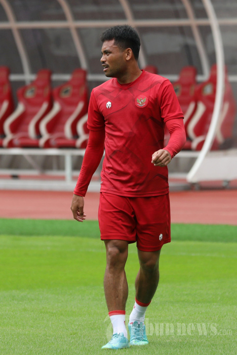 Pemain Tim Nasional Indonesia Saddil Ramdani melakukan latihan di Stadion Utama Gelora Bung Karno, Jakarta, Kamis (22/12/2022). Latihan tersebut dilakukan jelang hadapi Kamboja pada Piala AFF 2022. TRIBUNNEWS/IRWAN RISMAWAN