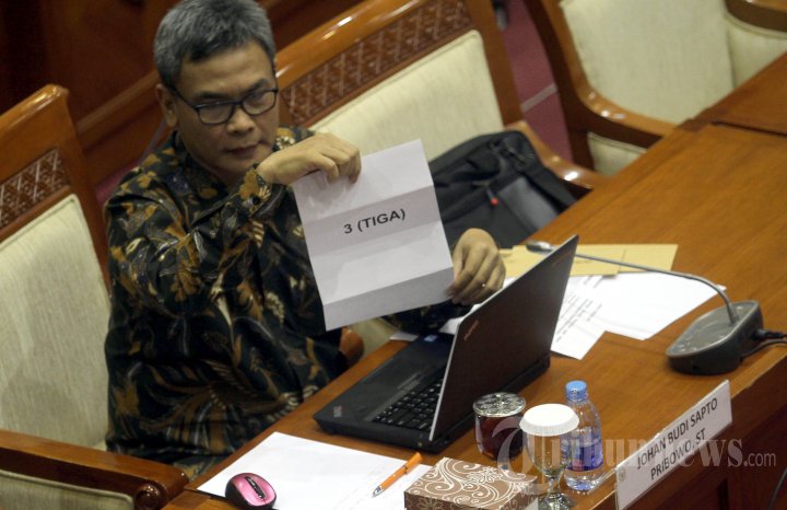 Calon Pimpinan KPK Johan Budi SP mengikuti uji makalah di Komisi III DPR, Kompleks Parlemen Senayan, Jakarta, Jumat (4/12/2015). Uji makalah tersebut diikuti sembilan dari sepuluh calon pimpinan KPK, sementara satu calon lainnya Busyro Muqodas tidak hadir. Warta Kota/henry lopulalan
