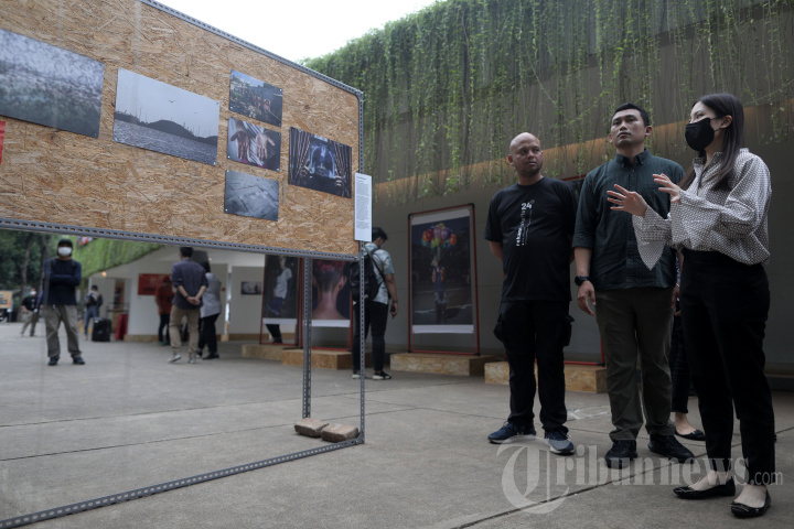 Wakil Menteri Pariwisata dan Ekonomi Kreatif (Wamenparekraf), Angela Tanoesoedibjo (kanan) didampingi Sekjen PFI Pusat, Hendra Eka (tengah) dan Ketua PFI Jakarta, Herman Zakharia meninjau pameran foto jurnalistik Rekam Jakarta 24+ di Taman Lapangan Banteng, Jakarta, Selasa (1/11/2022). PFI Jakarta dalam penyelenggaraan Rekam Jakarta 24+ tersebut bekerja sama salah satunya dengan Privy Identitas Digital yang merupakan penyelenggara setifikasi elektronik tersertifikasi dan penyelenggara tanda tangan elektronik yang dapat menjadi solusi dalam melindungi HKI para pewarta foto di era digitalisasi. Pameran foto Rekam Jakarta 24+ berlangsung hingga 6 November 2022. TRIBUNNEWS/IRWAN RISMAWAN