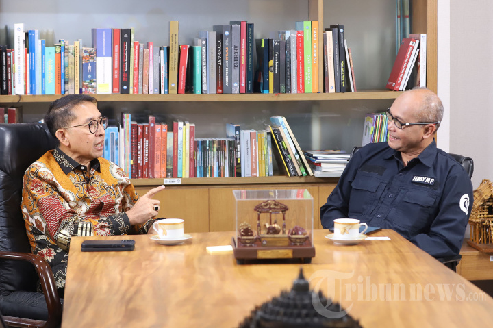 Menteri Kebudayaan Fadli Zon saat diwawancarai oleh Direktur Pemberitaan Tribun Network Febby Mahendra Putra di Gedung Kementerian Kebudayaan, Jakarta Selatan, Kamis (5/12/2024). Pada kesempatan tersebut Fadli Zon mengatakan Indonesia telah mengusulkan tiga warisan budaya Indonesia yaitu Reog Ponorogo kategori Urgent Safeguarding List yang diresmikan pada 3 Desember 2024, Kebaya Nominasi Multinasional kategori Representative List of the Intangible Cultural Heritage of Humanity pada 4 Desember 2024 dan Kolintang kategori Extension Representative List of the Intangible Cultural Heritage of Humanity yang disidangkan pada 5 Desember 2024. Tribunnews/Jeprima