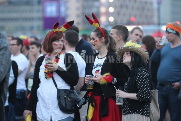 Sejumlah Suporter Jerman dan duduk FOKE di Funzoke. Polandia ( 14/6/2012) (Tribun Jakarta/Husein Sanusi/Medan)
