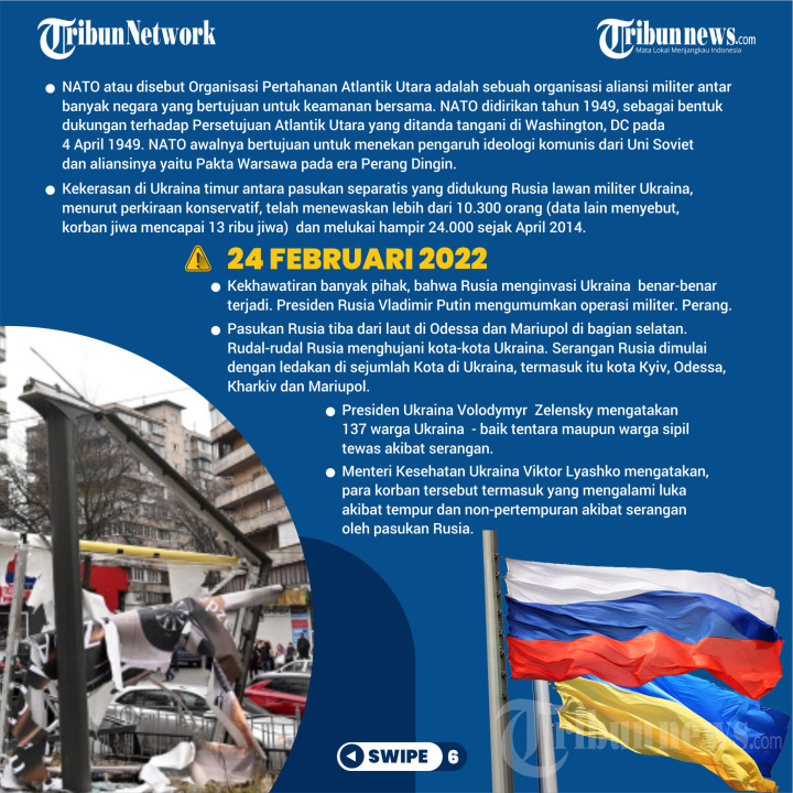 Berikut ini kronologi ketegangan sejak 2013 hingga meletusnya invasi Rusia ke Ukraina, Kamis (24/2/2022). TRIBUNNEWS.COM