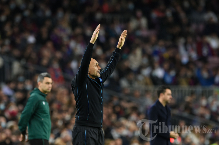 Ekspresi pelatih Napoli asal Italia, Luciano Spalletti dalam laga Liga Europa antara FC Barcelona melawan SSC Napoli di Stadion Camp Nou, Barcelona, Spanyol, Jumat (18/2/2022) dini hari WIB. Pertandingan berakhir imbang dengan skor 1-1 (0-1). AFP/JOSEP LAGO
