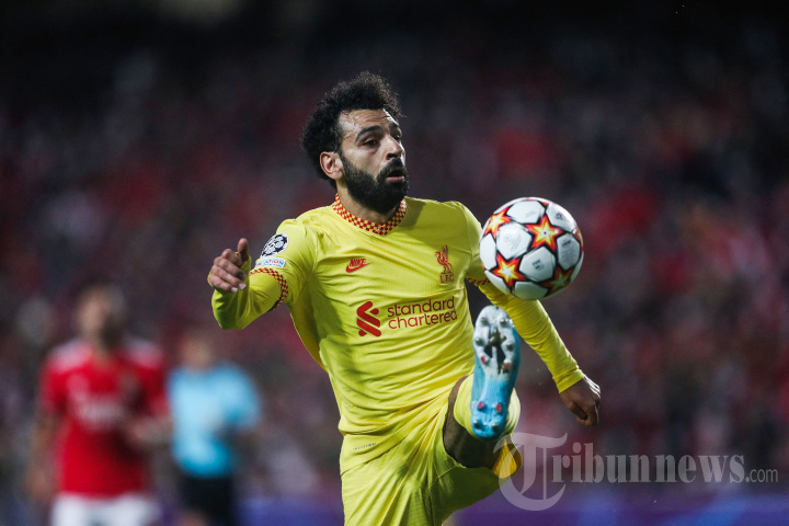 Gelandang Liverpool Mesir Mohamed Salah mengontrol bola selama pertandingan sepak bola leg pertama perempat final Liga Champions UEFA antara SL Benfica dan Liverpool FC di stadion Luz di Lisbon pada 5 April 2022. (Photo by CARLOS COSTA / AFP)