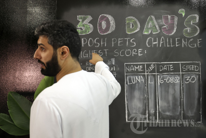 Mansour Hammadi, pemilik butik dan spa 'Posh Pets', berbicara selama wawancara di tempat tersebut di Abu Dhabi pada 16 Agustus 2022. - Saat suhu Teluk yang semakin panas menjadi berbahaya bagi kesehatan di tengah kekhawatiran atas laju perubahan iklim, mereka yang mampu untuk tidak bekerja di luar di bawah terik matahari tinggal di dalam AC. Dan bagi pemilik hewan peliharaan yang dimanjakan yang mampu mengeluarkan uang, gym ber-AC untuk anjing telah menjadi pilihan yang menarik. (Photo by Karim SAHIB / AFP)