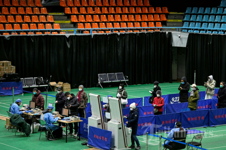 Orang-orang menunggu untuk menemui dokter di klinik demam darurat di sebuah stadion di tengah pandemi Covid-19 di Beijing pada 18 Desember 2022. (Photo by Jade GAO / AFP)