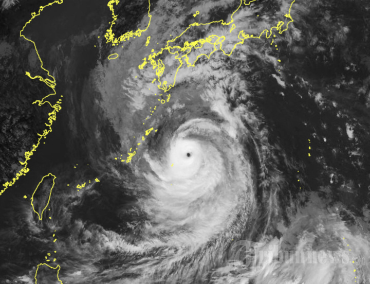 Foto selebaran ini diambil dan dirilis pada 17 September 2022 oleh Badan Meteorologi Jepang menunjukkan citra satelit menunjukkan Topan Nanmadol yang terletak di dekat pulau-pulau terpencil selatan Jepang. (Photo by Handout / Japan Meteorological Agency / AFP)