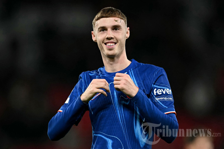 Gelandang Chelsea asal Inggris #20 Cole Palmer bereaksi setelah pertandingan sepak bola Liga Primer Inggris antara Manchester United dan Chelsea di Old Trafford di Manchester, barat laut Inggris, pada tanggal 3 November 2024. - Pertandingan berakhir Manchester United 1 Chelsea 1. (Photo by Paul ELLIS / AFP)