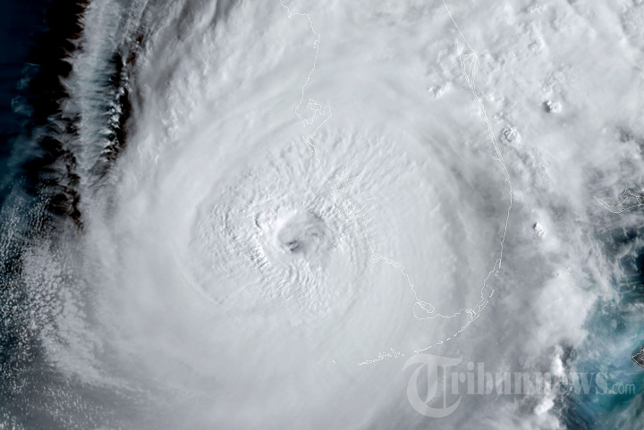 Gambar selebaran satelit Administrasi Kelautan dan Atmosfer Nasional (NOAA) ini menunjukkan mata Badai Ian mendekati Florida, pada 28 September 2022 pukul 12:50 UTC. - Ian menguat menjadi badai Kategori 4 saat menuju Florida pada hari Rabu, dengan peramal memperingatkan gelombang badai yang mengancam jiwa dan angin menghancurkan setelah dilaporkan menewaskan dua orang dan menyebabkan jutaan orang kehilangan listrik di Kuba. (Photo by Jose ROMERO / NOAA/RAMMB / AFP)
