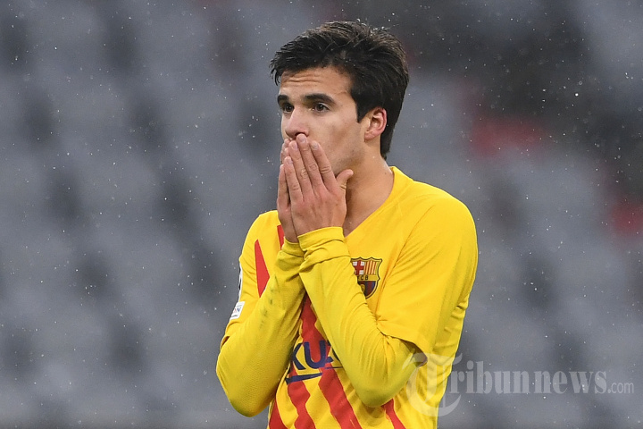 Gelandang Barcelona Spanyol Riqui Puig bereaksi setelah pertandingan sepak bola grup E Liga Champions UEFA FC Bayern Munich v FC Barcelona di Munich, Jerman selatan pada 8 Desember 2021. (Photo by Christof STACHE / AFP)