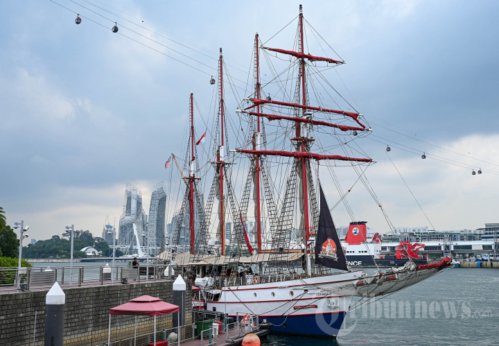 Gambar yang diambil pada 13 Agustus 2023 ini menunjukkan Royal Albatross, kapal tinggi mewah yang menyelenggarakan pengalaman berlayar dan bersantap di sekitar perairan Singapura dengan hewan peliharaan diperbolehkan. Pemilik kucing di Singapura sekarang dapat membawa hewan peliharaannya ke kapal pesiar matahari terbenam yang mewah, cocok untuk anak kucing yang dimanjakan yang menikmati hal-hal yang lebih baik dalam hidup. (Photo by Roslan RAHMAN / AFP)