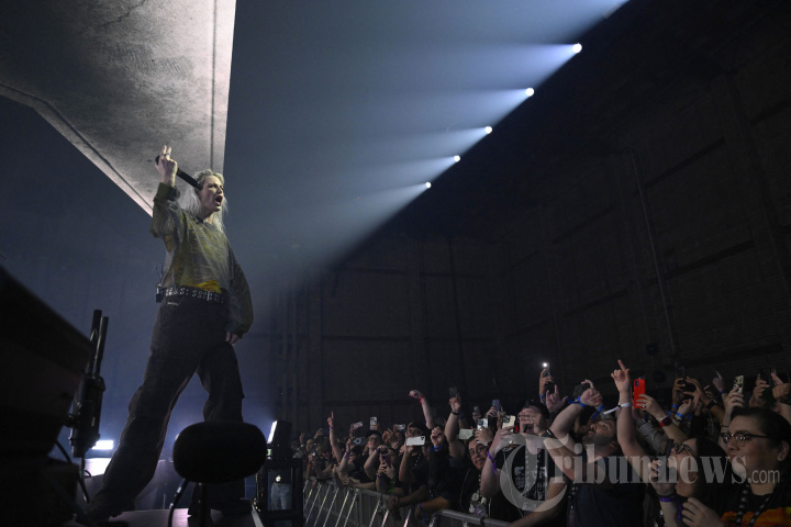 Emily Armstrong dari Linkin Park tampil selama siaran langsung global di Warner Bros. Studios pada tanggal 5 September 2024 di Burbank, California. Timothy Norris/Getty Images for Warner Music/AFP (Photo by Timothy Norris / GETTY IMAGES NORTH AMERICA / Getty Images via AFP)