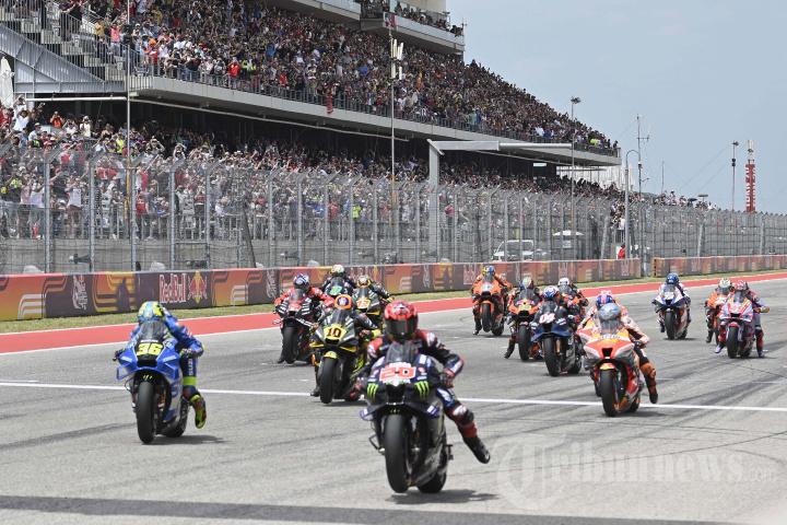 Para pembalap MotoGP start dari grid selama balapan MotoGP selama MotoGP Of The Americas - Race pada 10 April 2022 di Austin, Texas. Mirco Lazzari gp/Getty Images/AFP (Photo by Mirco Lazzari gp / GETTY IMAGES NORTH AMERICA / Getty Images via AFP)