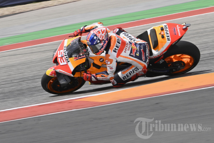 Marc Marquez dari Spanyol dan Tim Repsol Honda melewati tikungan selama balapan MotoGP selama MotoGP Of The Americas - Race pada 10 April 2022 di Austin, Texas. Mirco Lazzari gp/Getty Images/AFP (Photo by Mirco Lazzari gp / GETTY IMAGES NORTH AMERICA / Getty Images via AFP)