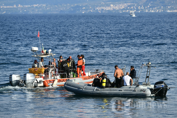 Tim penyelamat beroperasi di lepas pelabuhan Porticello dekat Palermo, tempat mereka mencari orang terakhir yang hilang pada 22 Agustus 2024, tiga hari setelah kapal pesiar mewah berbendera Inggris Bayesian tenggelam. Semua orang yang hilang setelah kapal pesiar mewah itu tenggelam di lepas pantai Sisilia -- termasuk taipan teknologi Inggris Mike Lynch -- telah ditemukan, kata seorang pejabat penjaga pantai. Pejabat itu tidak mengidentifikasi Lynch dengan nama, setelah laporan bahwa dia adalah jenazah terakhir yang ditarik dari bangkai kapal "Bayesian", tetapi mengonfirmasi bahwa dari tiga pria dan tiga wanita yang hilang, pihak berwenang kini hanya mencari seorang wanita. - Bayesian, yang membawa 22 orang termasuk 10 awak kapal, berlabuh sekitar 700 meter dari pelabuhan sebelum fajar ketika dihantam oleh pusaran air. Di antara enam orang yang hilang adalah pengusaha teknologi Inggris Mike Lynch dan putrinya yang berusia 18 tahun Hannah, dan Jonathan Bloomer, ketua Morgan Stanley International, dan istrinya Judy. (Photo by Alberto PIZZOLI / AFP)