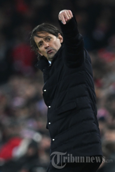 Pelatih Inter Milan asal Italia, Simone Inzaghi memberikan instruksi kepada pemainnya dari pinggir lapangan dalam laga leg kedua babak 16 besar Liga Champions antara Liverpool melawan Inter Milan di Stadion Anfield, Liverpool, Inggris barat laut, Rabu (9/3/2022) dini hari WIB. Pertandingan tersebut berakhir dengan skor 0-1 (0-0) untuk Inter, namun Liverpool tetap lolos ke babak perempat final karena unggul agregat 2-1. AFP/PAUL ELLIS