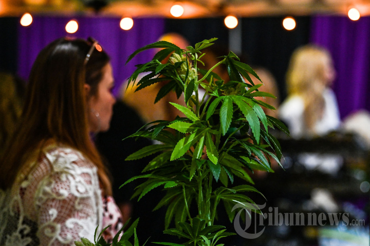 Tanaman ganja terlihat dipajang di Cannabis & Psychedelic Expo di Miami Airport Convention Center di Miami, Florida, pada 5 Februari 2022. - Cannadelic Miami adalah konferensi dan pameran dua hari yang akan mengeksplorasi bisnis dan sains dari kedua ganja dan psikedelik. (Photo by CHANDAN KHANNA / AFP)