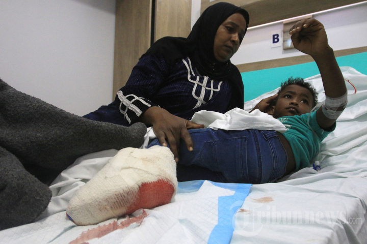 Seorang anak, yang terluka dalam serangan Israel di desanya, menerima perawatan di desa Saksakiyeh di Lebanon selatan pada 24 September 2024. - Israel mengumumkan puluhan serangan udara baru terhadap benteng Hizbullah di Lebanon pada 24 September, sehari setelah 492 orang, termasuk 35 anak-anak, tewas dalam pemboman paling mematikan sejak perang yang menghancurkan pada tahun 2006. (Photo by Mahmoud ZAYYAT / AFP)